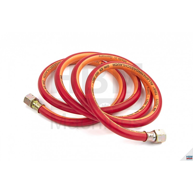 Tuyau à gaz pour butane et propane. Équipé de raccords en laiton de 3/8" (10 mm) avec fil femelle à gauche. Pression maximale 20 bars.