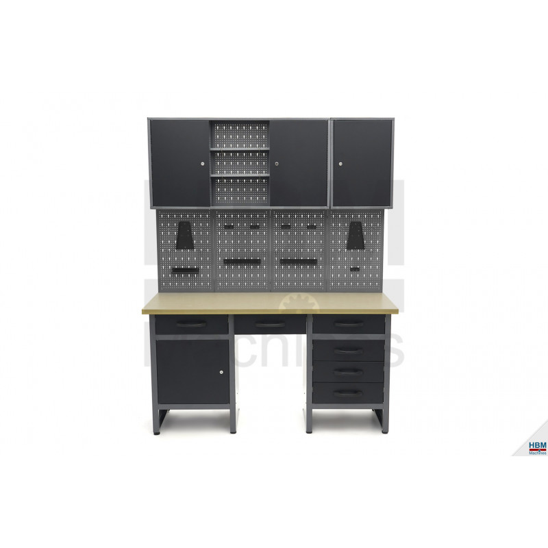 Etabli avec portes et caissons gris-noir 160x200x60 cm