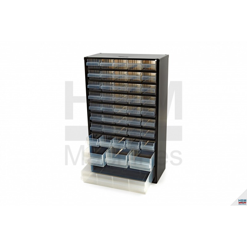 Commode en métal avec 44 tiroirs dans 3 tailles différentes, assez d'espace pour ranger différents articles. Les tiroirs sont en polypropylène.