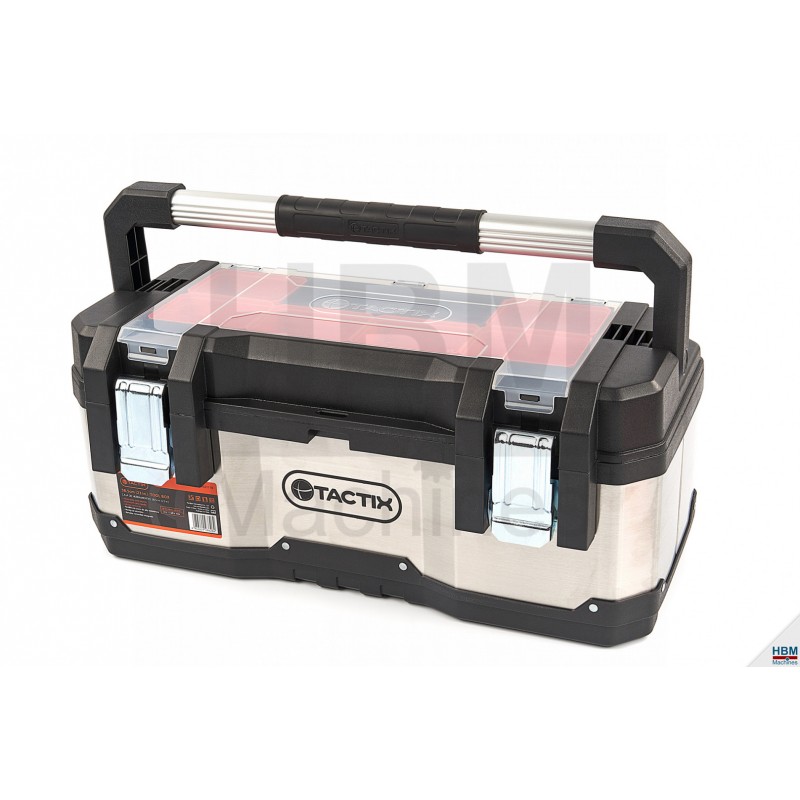 Tactix Mallette à outils acier inox avec plateaux de rangement amovibles - 9566