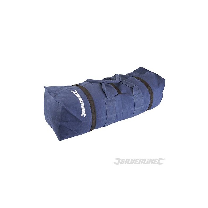 Sac à outils en toile de coton épaisse de grande contenance. Poignées en nylon robuste roulé avec sangles solides et boucles en plastique.