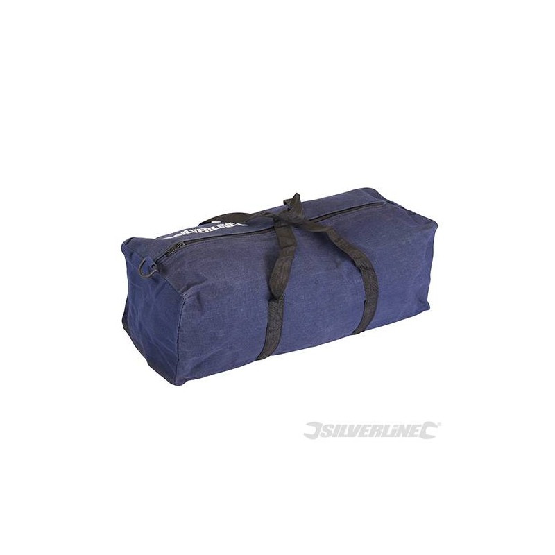 Sac à outils robuste en toile de coton épaisse. Poignées plates tissées et fermeture éclair en nylon robuste. Poche évasée.