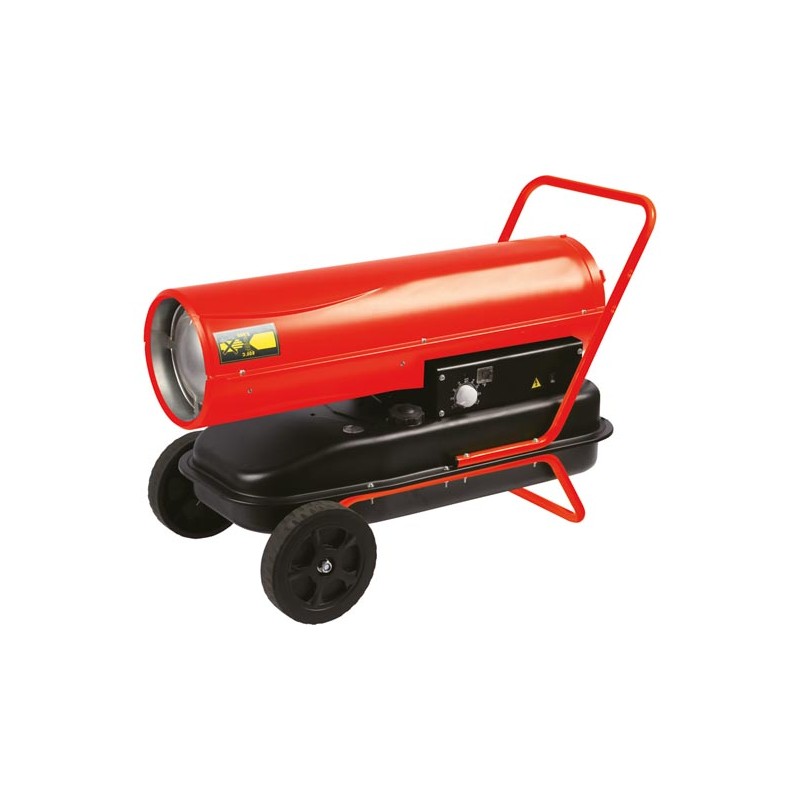 Ce canon à air chaud de Perel fonctionne au diesel ou au kérosène et s'utilise à l'extérieur ou dans les locaux bien ventilés. L'appareil a une puissance de 30 kW et est doté d'une chambre de combustion en acier inoxydable avec ventilateur, un thermostat, un réservoir de 38L, un affichage du niveau d'huile et une affichage de la température. En outre, ce canon à air chaud est doté de différentes protections : une sécurité de flamme, une protection thermique et une protection réservoir vide (extinction automatique en cas de réservoir vide) L'appareil s'éteindra automatiquement si le réservoir est vide.