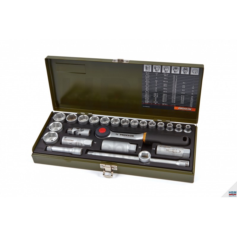 Proxxon Jeu Douilles + cliquet 3/8" CrV 24 pièces - 23110