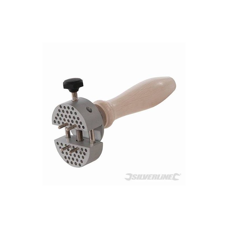 Mini étau avec poignée amovible permettant de fixer solidement la tête dans un étau par sa base carrée.