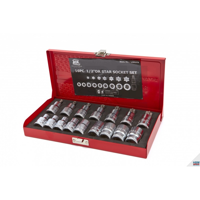 AOK Jeu 16 douilles Torx internes et externes professionnelles 1/2" - 6666