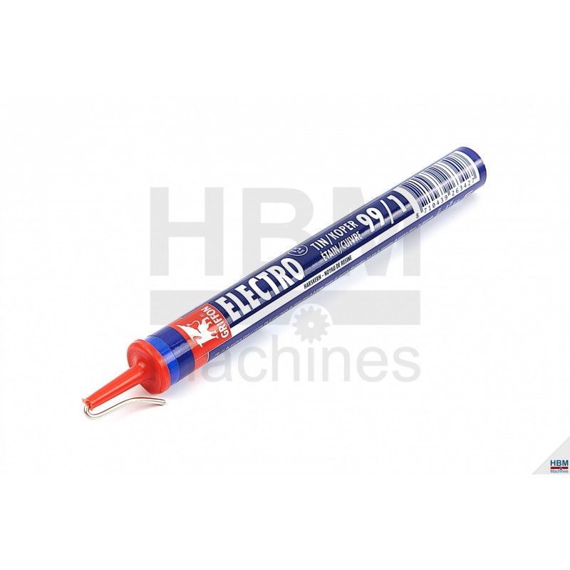 Tube de brasure étain / cuivre 99/1, 1.5 mm, âme en résine pour le brasage tendre d'applications électroniques telles que la réparation de produits électroménagers et de matériel audio.