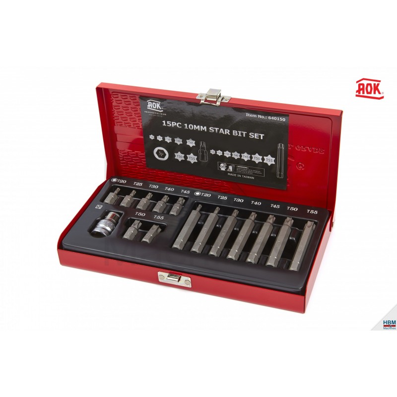 Coffret 15 embouts Torx + adaptateur 1/2" AOK - 6667