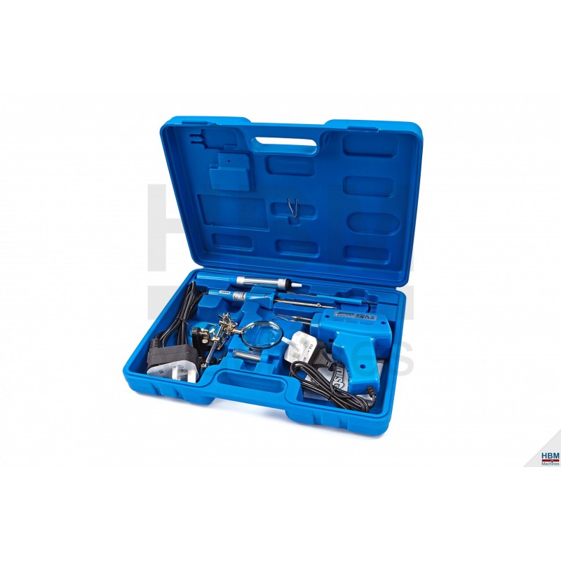 Pistolet à souder de 100 W pour travaux sur câbles et tôles. Fer à souder à pointe fine de 30 W pour le travail de précision. Pour les soudures d'électronique, à la maison ou au garage. Températures du fer à souder : 390-450 °C, pour le pistolet à souder : 500-550 °C.