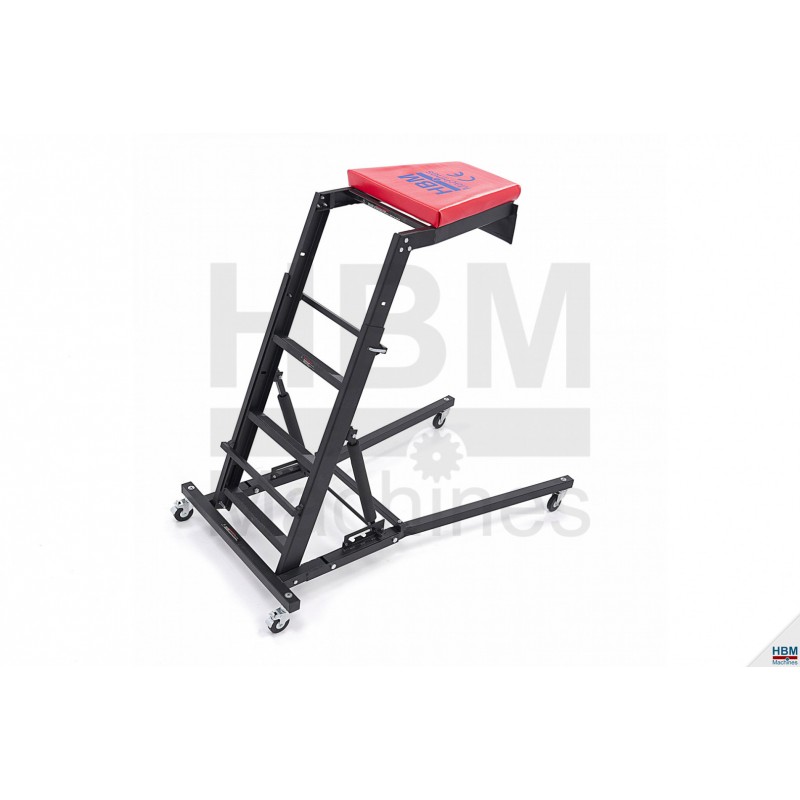 Inclinaison de l'échelle et du siège réglable. Châssis très bas pour s'insérer sous votre zone de travail (une voiture par ex.)