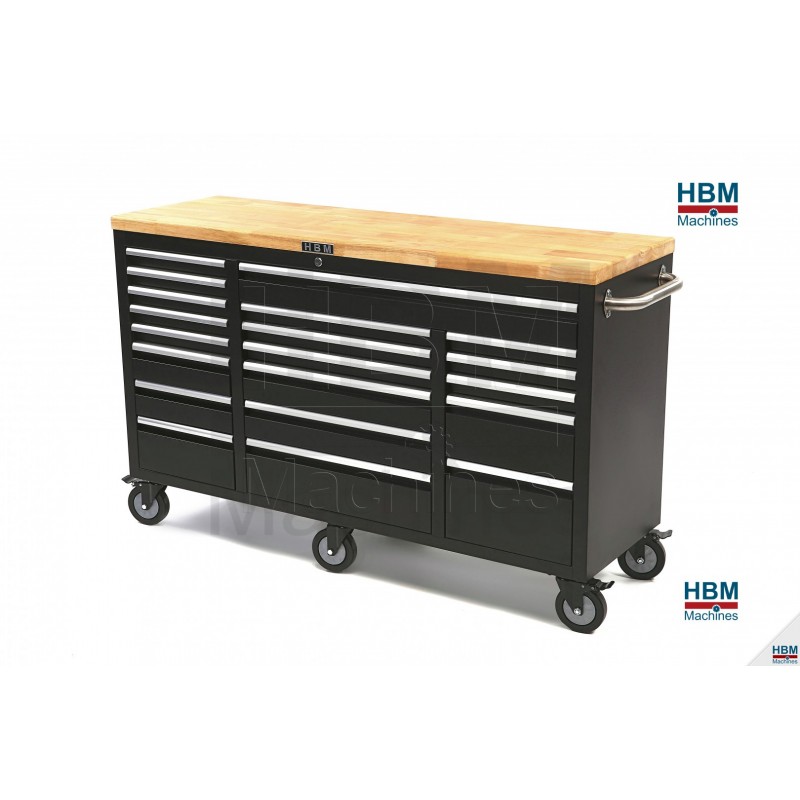 Servante établi plateau bois 150cm, 20 tiroirs, noire - 4945