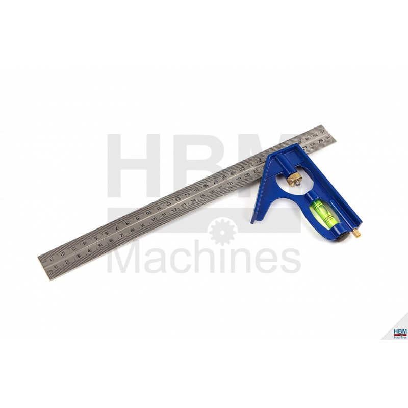Niveau précis avec règle en acier trempé de 300 mm de long. Manche en aluminium moulé sous pression et muni d'un niveau à bulle et d'une pointe à tracer. Graduations métriques et impériales claires. Face usinée avec précision. Vis de réglage moletée.