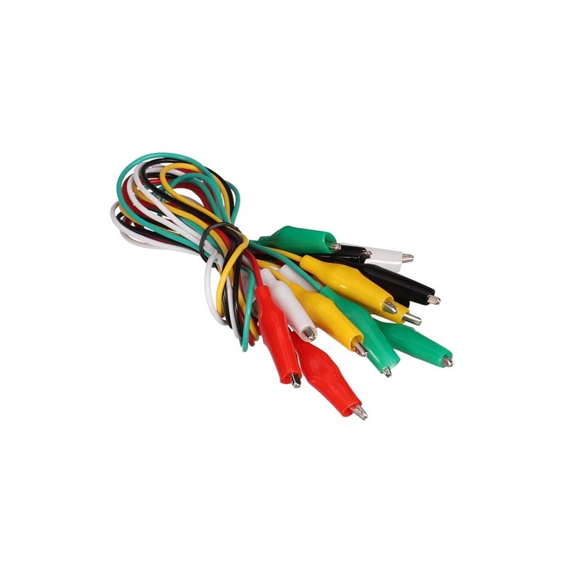Jeu 10 cordons 55 cm 5 couleurs avec pinces crocodiles isolées 27 mm - CM11N