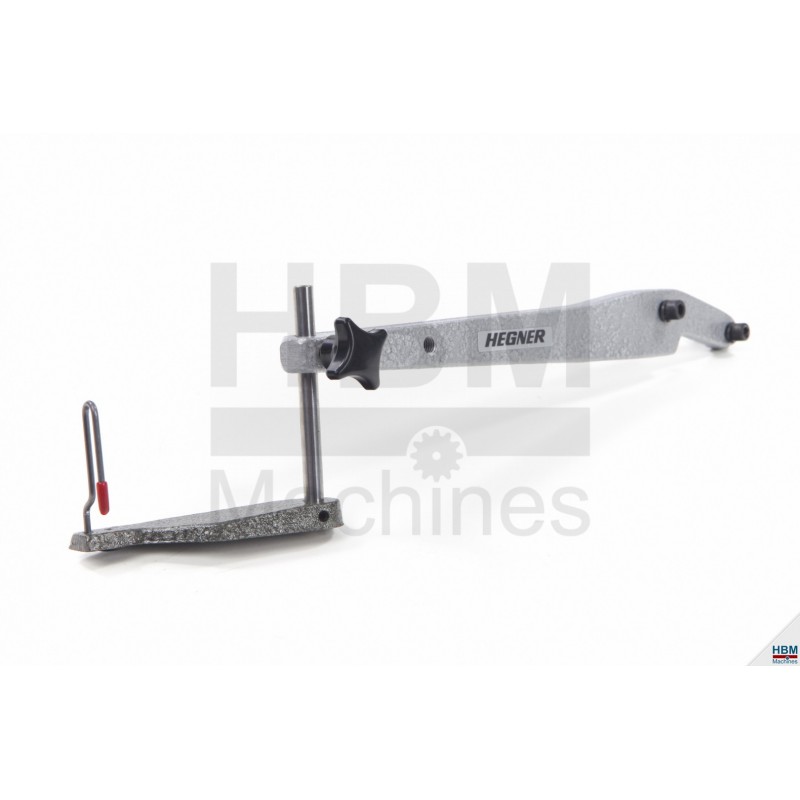 La pince à matériau Hegner comprend un bras de support, un tampon de pression et une protection des doigts.