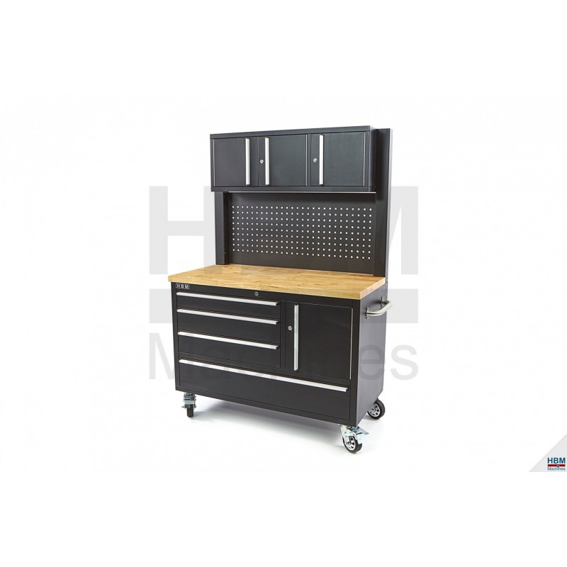 HBM Etabli Profi 122 cm avec placard et plateau en bois, NOIR - 8872