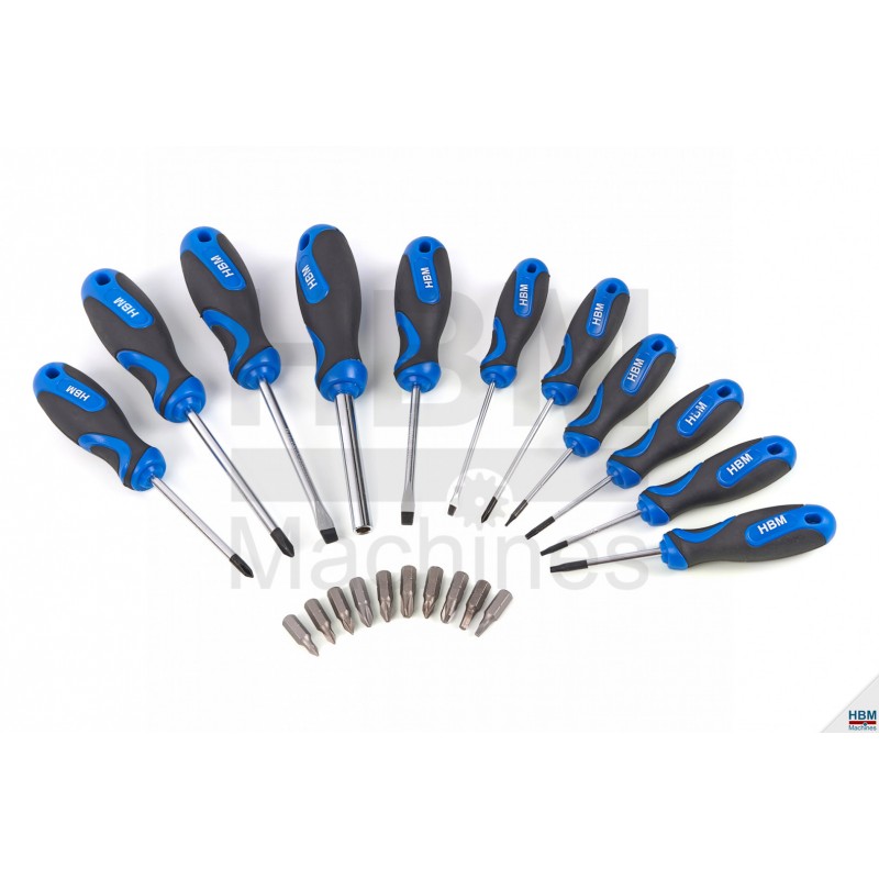 HBM Jeu de tournevis à poignée souple + Embouts, 21 pièces - 9226